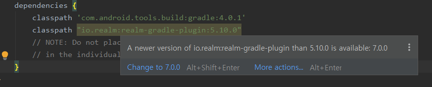 일반적으로 새로운 버전이 나오면 Lint에서 체크해서 하이라이트해서 보여주는데 Realm은 하이라이트가 되어 있지 않아서 이게 문제될 거라고는 생각하지 못했습니다.