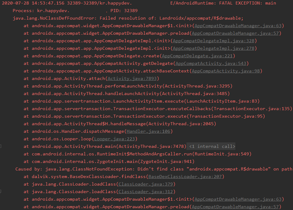 java.lang.NoClassDefFoundError: Failed resolution of: Landroidx/appcompat/R$drawable;
