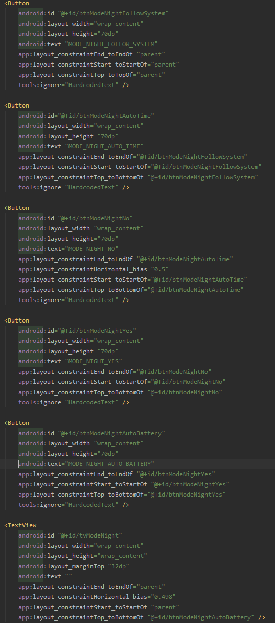 findViewById<View>(R.id.btnModeNightFollowSystem).setOnClickListener {